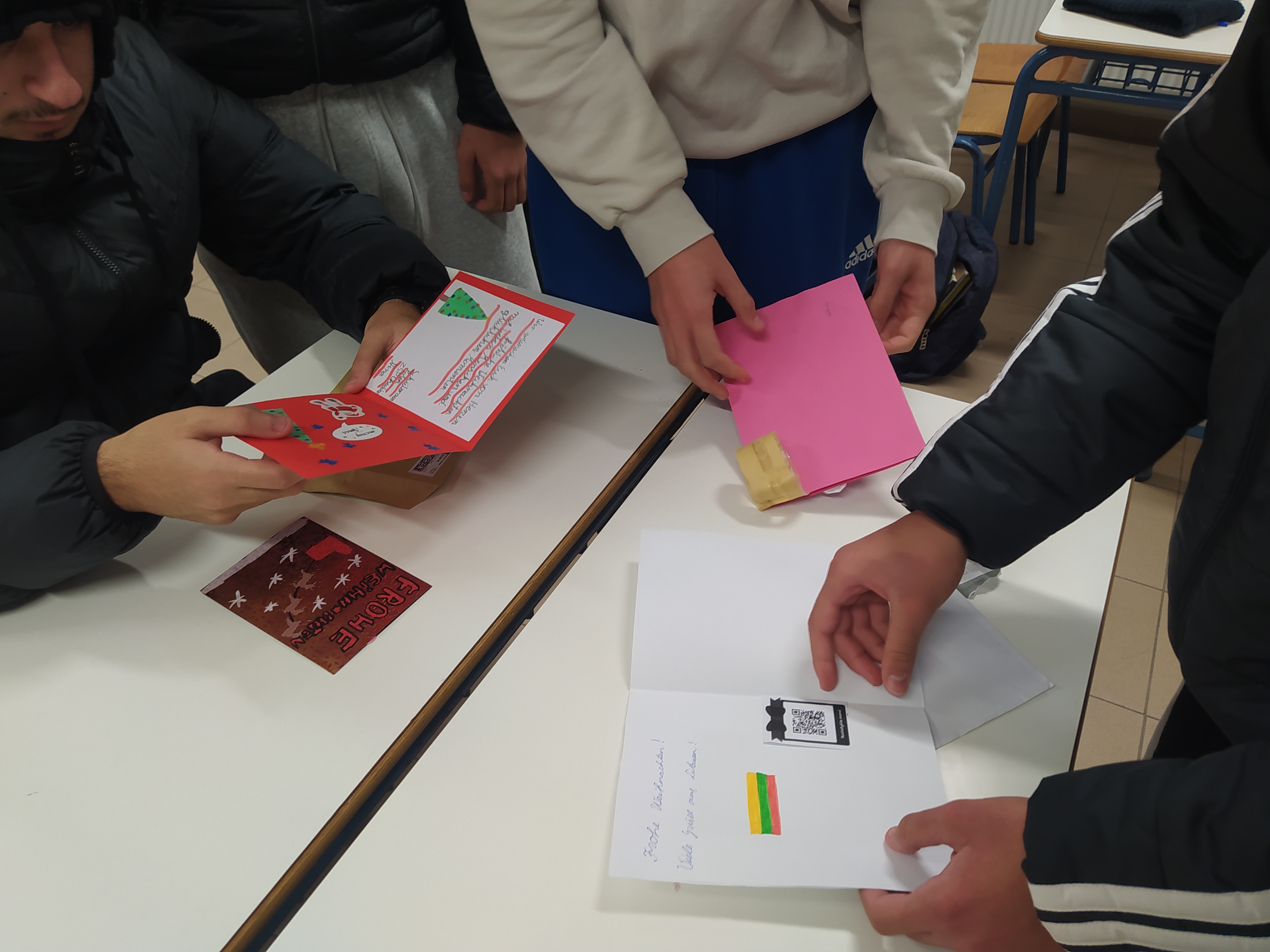 οι μαθητές και οι μαθήτριες του Β6 παρέλαβαν τις χριστουγεννιάτικες κάρτες των εταίρων μας,