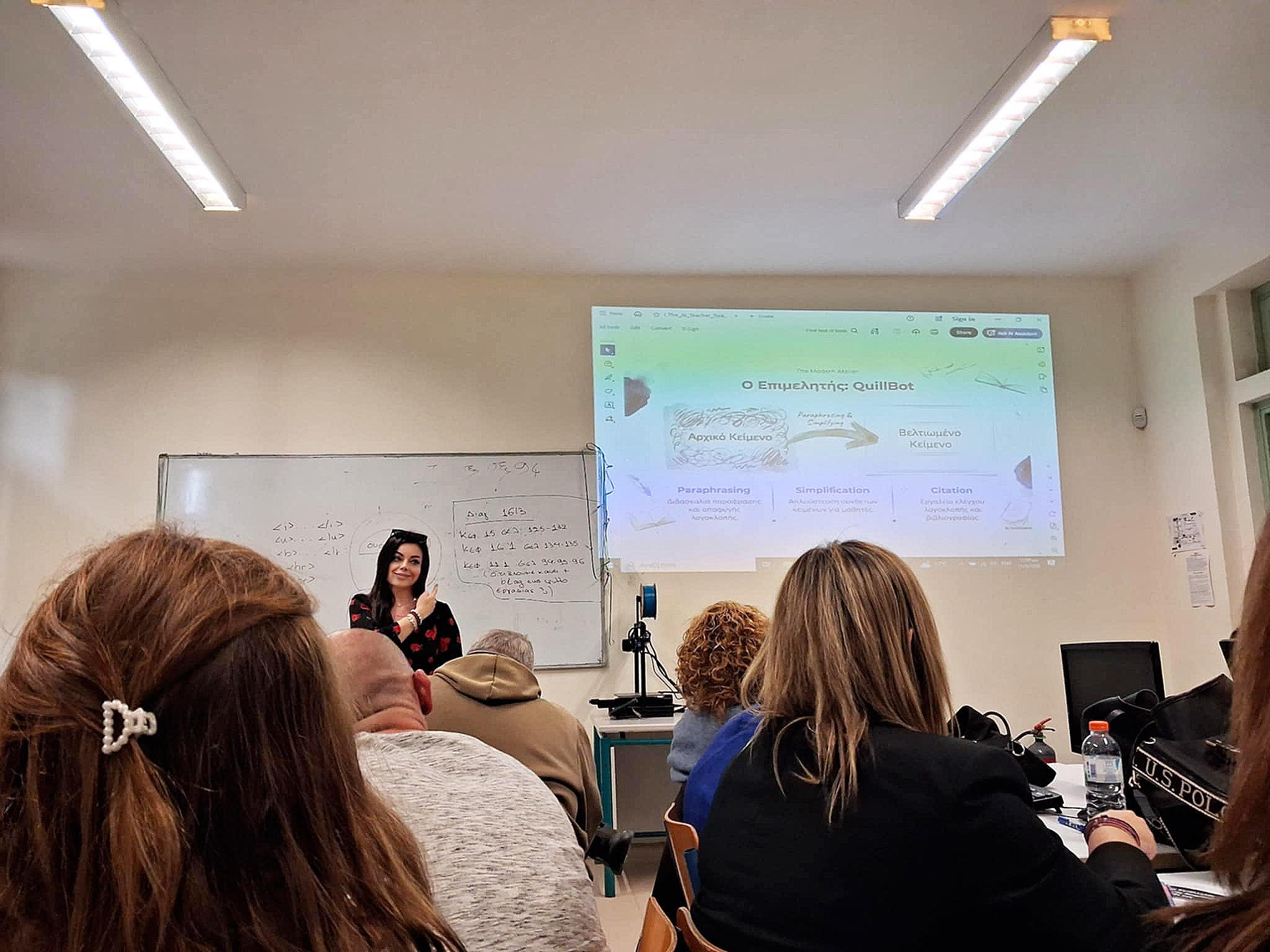 Στο πλαίσιο της συνάντησης παρουσιάστηκαν βασικές εφαρμογές δεκαπέντε εργαλείων AI στη διδακτική πράξη