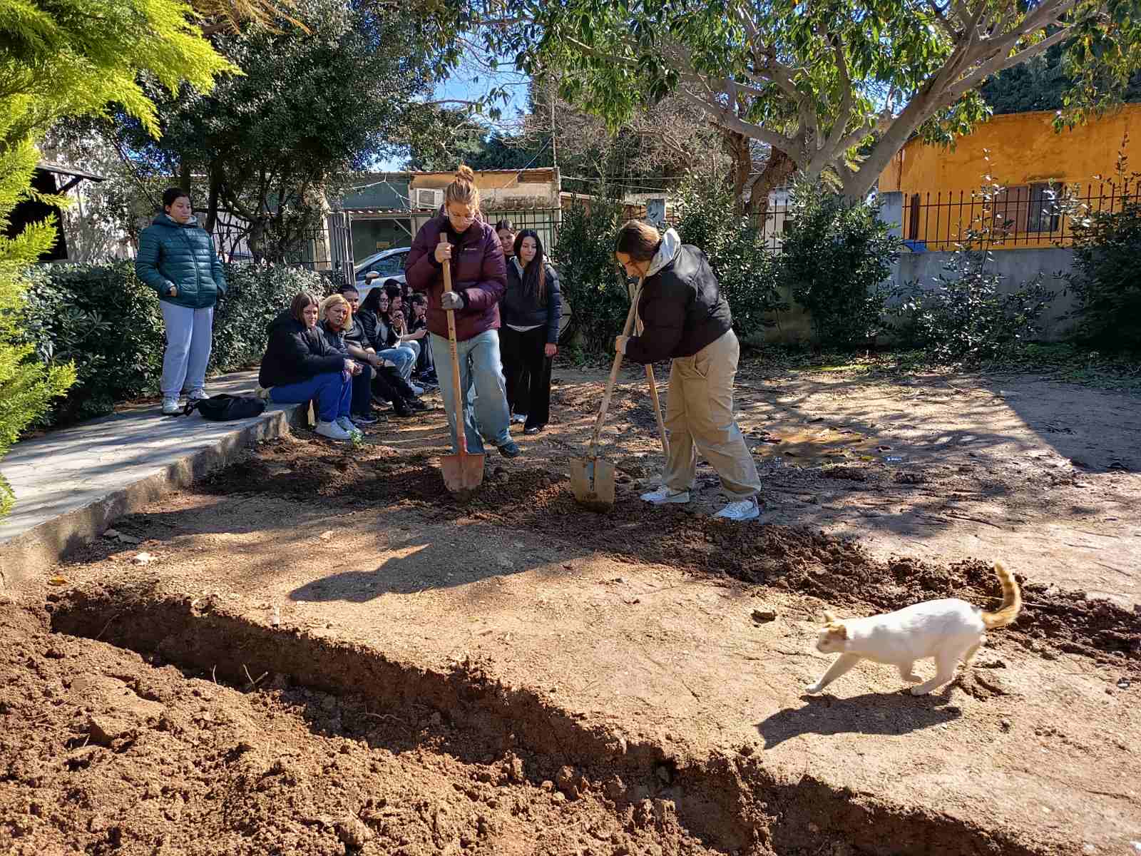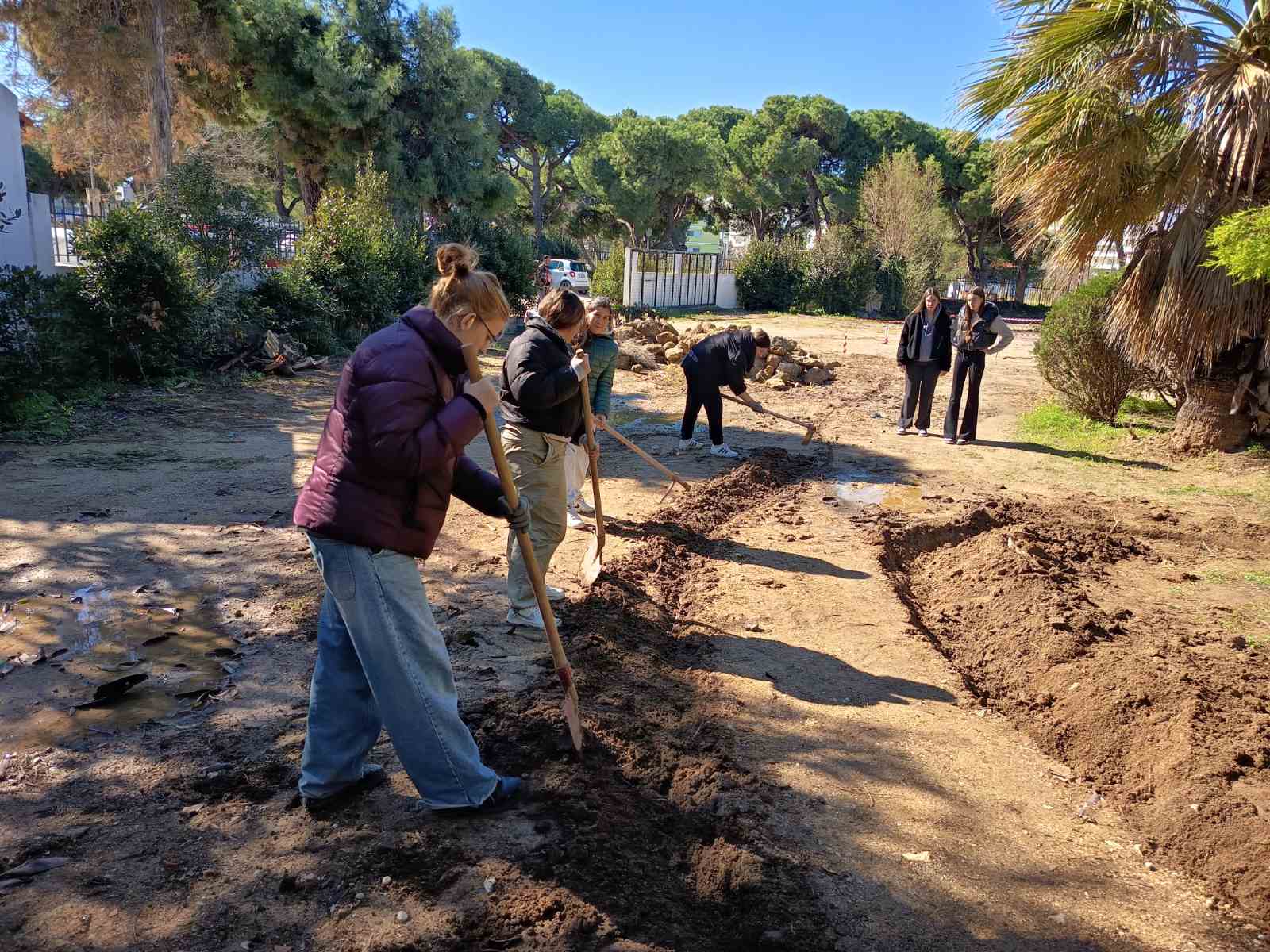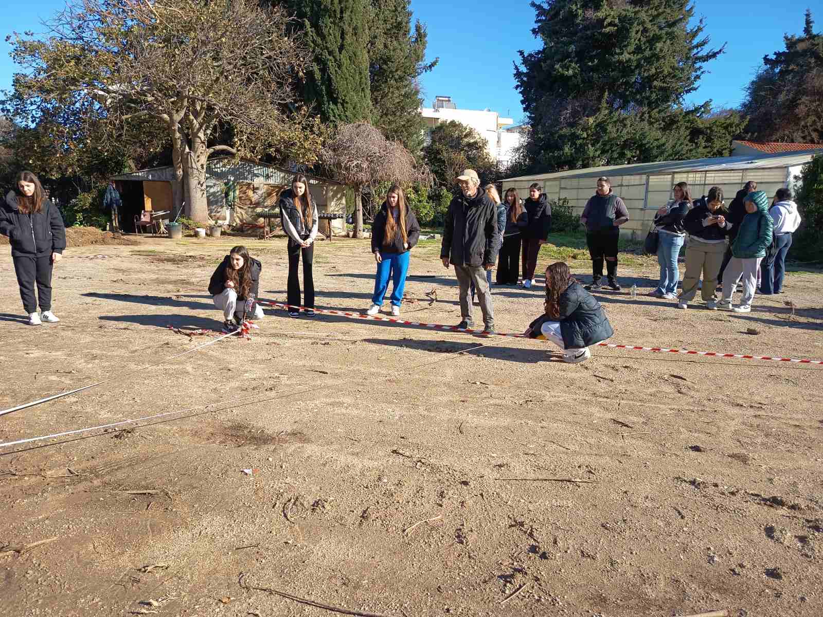 Ακόμη, με την καθοδήγηση του κ. Γεραβέλη, χάραξαν τα μικρά «οικόπεδα» στα οποία θα χωριστεί ο χώρος του φυτωρίου,