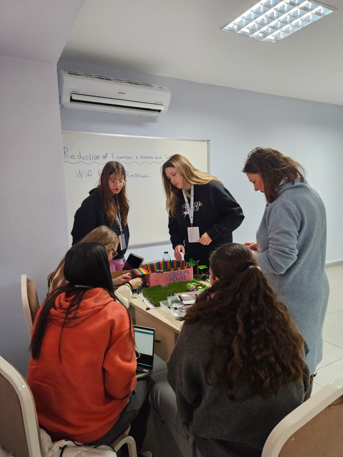Η διακρατική συνάντηση των εταίρων του προγράμματος πραγματοποιήθηκε από τις 24 έως τις 28 Φεβρουαρίου 2025. Κατά τη διάρκεια της συνάντησης, οι μαθητές και οι μαθήτριες από όλα τα συμμετέχοντα σχολεία ανέπτυξαν δεξιότητες όπως η δημιουργικότητα, η κριτική σκέψη, η υπολογιστική σκέψη και η καλλιτεχνική έκφραση, προκειμένου να επιλύσουν σύνθετα προβλήματα μέσα από το πλαίσιο ενός STEAM προγράμματος που ενισχύει τη διεπιστημονικότητα και τη συνεργασία μεταξύ διαφορετικών τομέων γνώσης με πολυαισθητηριακές προσεγγίσεις. Οι μαθητές κατάφεραν να σχεδιάσουν και να υλοποιήσουν έργα STEAM χρησιμοποιώντας υλικά χαμηλού κόστους και φιλικά προς το περιβάλλον, με στόχο την μείωση των δαπανών σε σπίτια και σχολεία. Μέσα από αυτά τα έργα παρουσίασαν δημιουργικές λύσεις για την επίλυση συγκεκριμένων προβλημάτων, ενσωματώνοντας ψηφιακή τεχνολογία και εφαρμόζοντας στην πράξη τις επιστημονικές και τεχνολογικές τους γνώσεις στους τομείς των STEAM.
