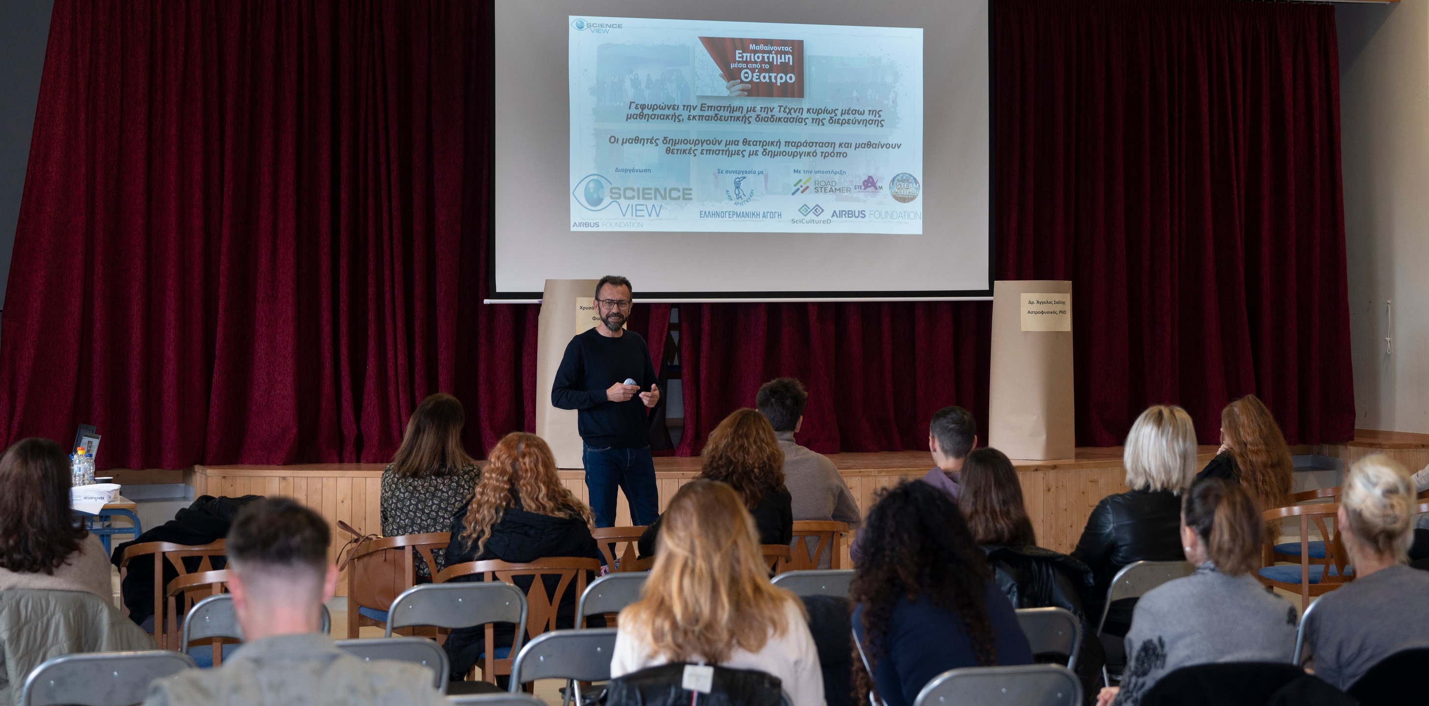 Η ημερίδα διοργανώθηκε στο πλαίσιο της δράσης «Μαθαίνοντας επιστήμη μέσα από το θέατρο» της Science view και του προγράμματος Διαπίστευσης Erasmus+,