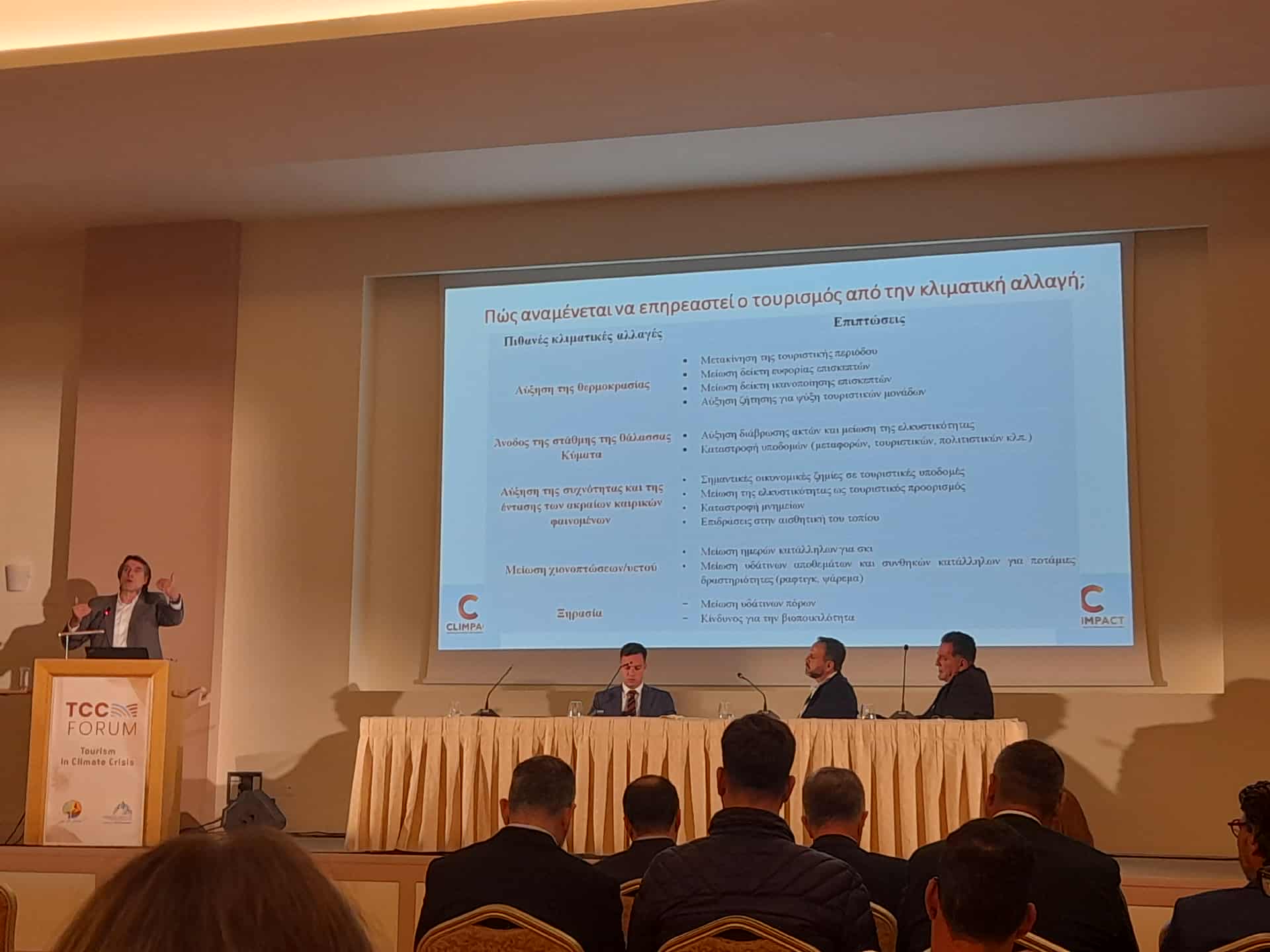Κατά τη διάρκεια του forum (tccforum.gr), πανεπιστημιακοί και ερευνητές παρουσίασαν εισηγήσεις σχετικά με την κλιματική προσαρμογή των νησιών, την περιβαλλοντική ανθεκτικότητα και τον πράσινο μετασχηματισμό του τουρισμού.