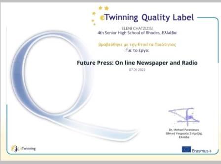 Το 4ο Γενικό Λύκειο Ρόδου βραβεύθηκε με εθνική ετικέτα ποιότητας eTwinning ...