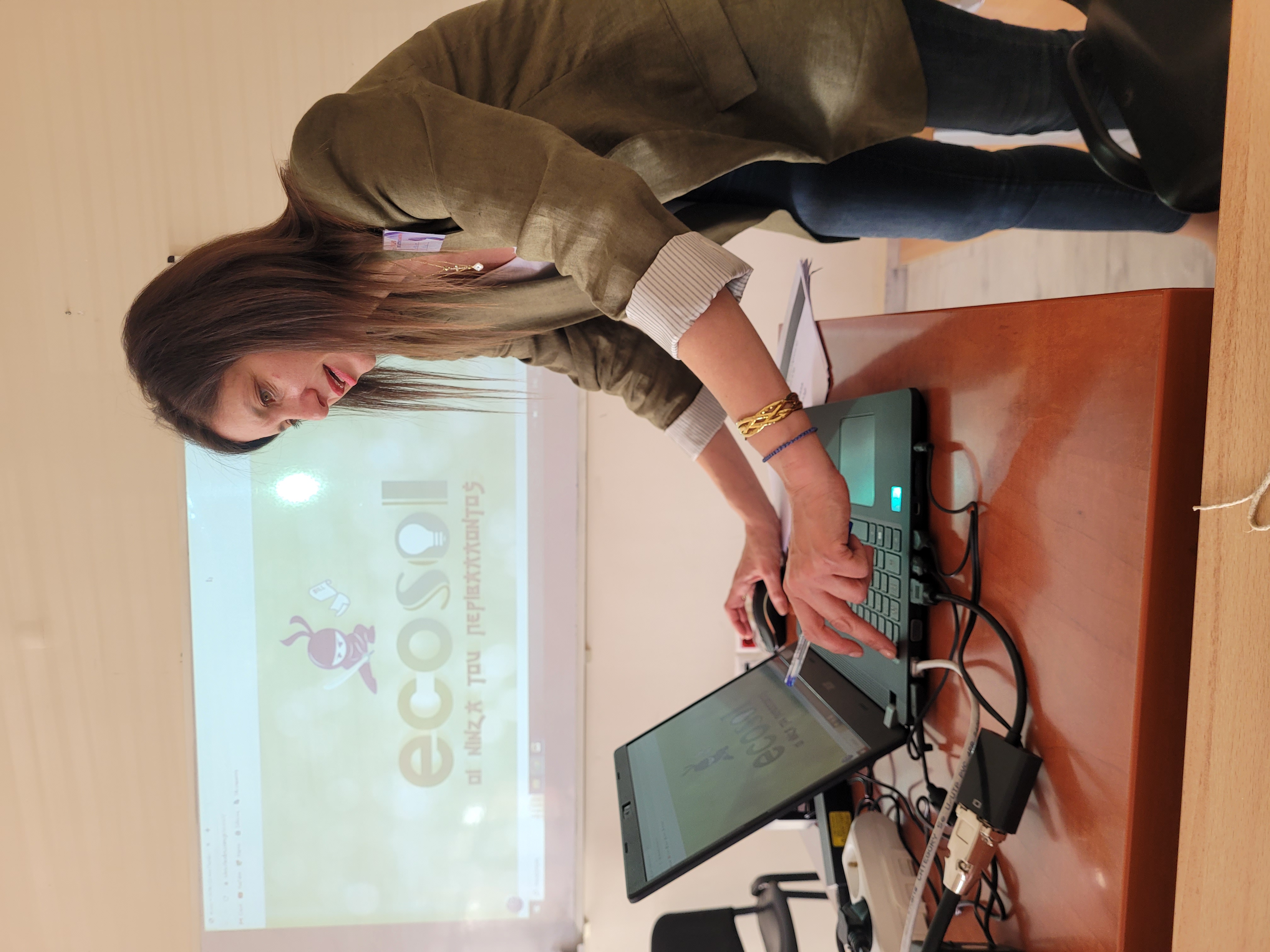 Η εκπαιδευτικός – οικονομολόγος του 4ου ΓΕ.Λ. Ρόδου, Λίνα Φιλππάκη παρουσίασε δυο εισηγήσεις που είχαν τίτλο " Εικονικές εκλογές: μια έρευνα δράσης " και " Ecosol: μια "πράσινη" εικονική επιχείρηση ".